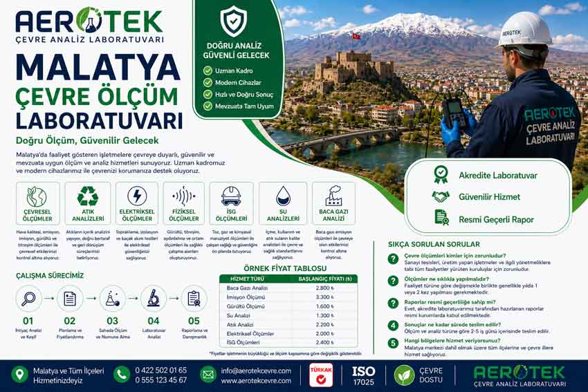 Malatya Çevre Ölçüm Laboratuvarı | Güvenilir Analiz ve Danışmanlık Hizmetleri Malatya’da faaliyet gösteren işletmeler için çevre ölçüm ve analiz hizmetleri, hem yasal yükümlülüklerin yerine getirilmesi hem de çevreye duyarlı üretim süreçlerinin sürdürülebilirliği açısından büyük önem taşır. Malatya çevre ölçüm laboratuvarı