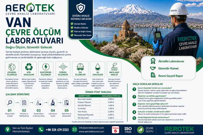 Van Çevre Ölçüm Laboratuvarı | Güvenilir Analiz ve Danışmanlık Hizmetleri Van’da faaliyet gösteren işletmeler için çevre ölçüm ve analiz hizmetleri, hem yasal yükümlülüklerin yerine getirilmesi hem de sürdürülebilir üretim süreçlerinin sağlanması açısından kritik öneme sahiptir. Van çevre ölçüm laboratuvarı hizmetleri